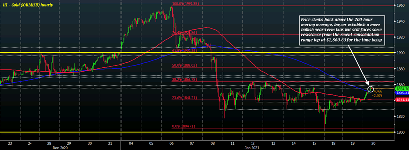 短期图表显示,金价也正在回到200小时移动均线(蓝线)上方,这使得近期倾向更加看涨。