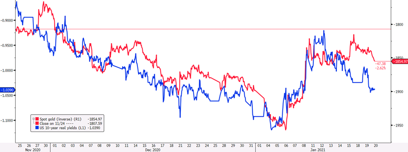 美元今天的小幅走软也对黄金有利,尽管推动金价上涨的一个关键因素仍然是实际收益率的下降: