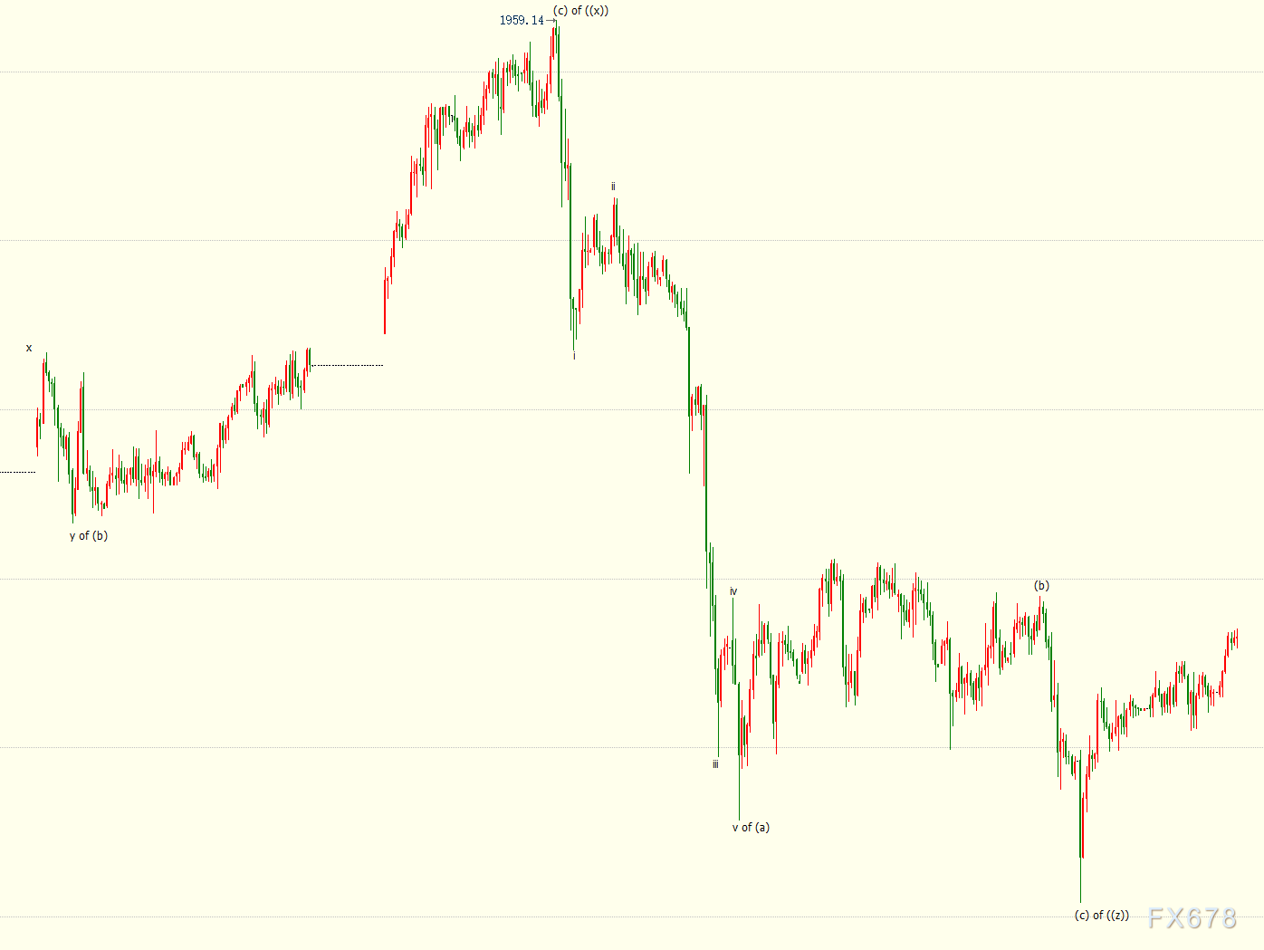 小时图上看,金价或已经结束自1858美元开启的下行(c)浪走势,(c)浪是自1959美元开启的下行((z))浪的子浪。((z))浪则隶属于自2075美元开启的调整2浪。