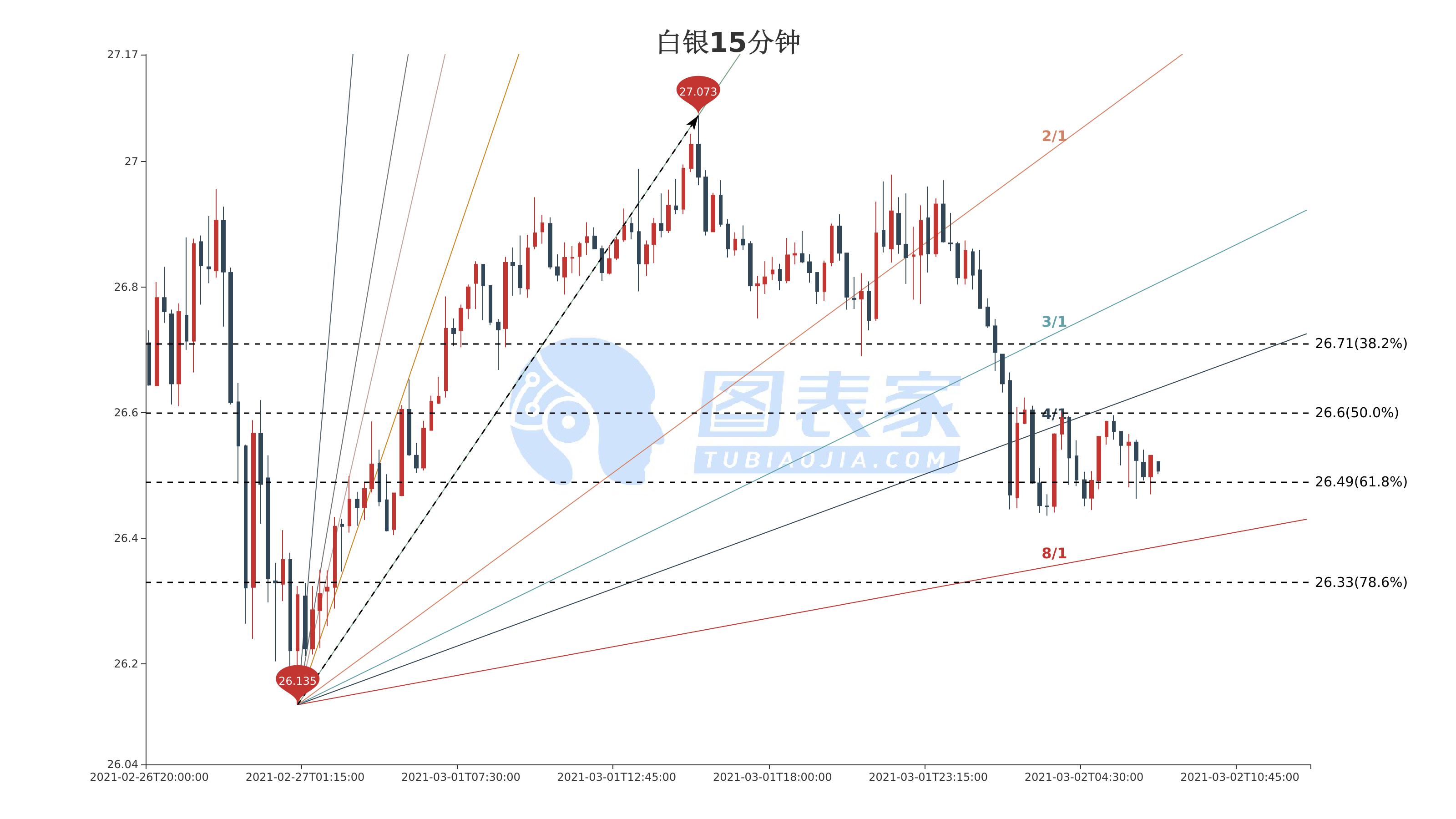 观点:15分钟周期看跌,目标见26.49(若价格突破26.71,则观点失效)。