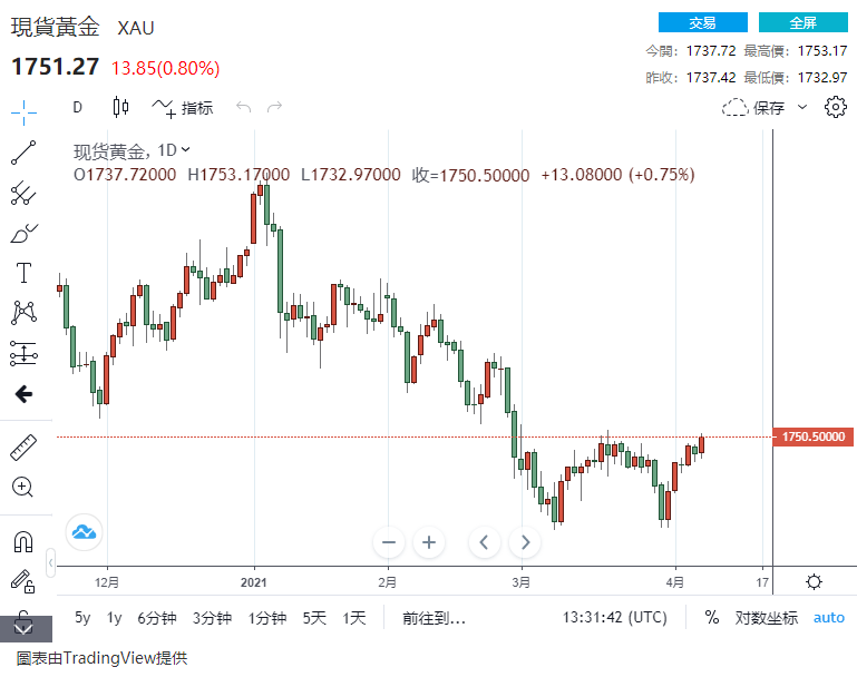 周四(4月8日)欧市盘中,现货黄金再度拉升,最高触及1753.17美元/盎司,最多大涨超20美元。金价大涨背后源于美元的下挫。