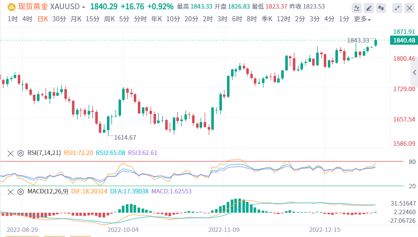 当前首个阻力位看向1842美元,成功突破该水平将有望把金价进一步推高至1878美元,而进一步突破1878,将打开金价升至1925的通道。