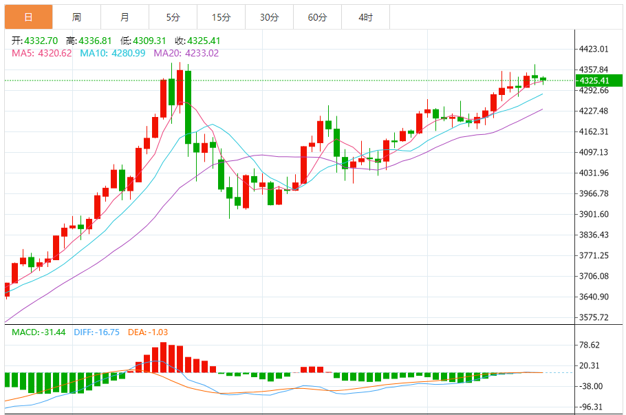周五(12月19日),现货黄金目前位于4325.64美元/盎司附近,跌幅为0.16%。