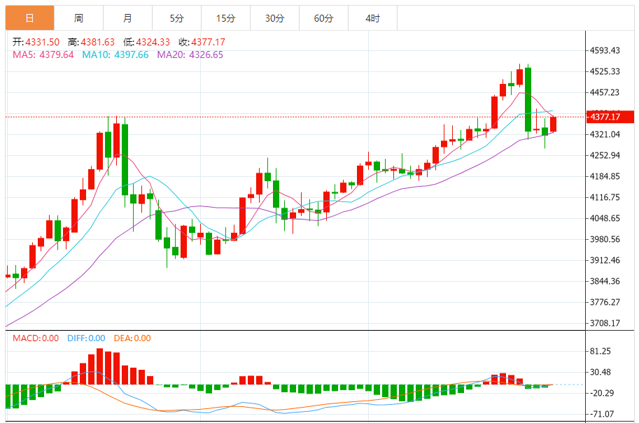 阻力位:4350-4360美元为首要阻力区间,对应昨日反弹高点与心理关口;突破后将挑战4375-4380美元(20日均线+Murray水平压制),中期阻力关注4437美元(前期高点+斐波那契回撤位重合区域),进一步突破后有望向4500美元历史高点发起冲击。