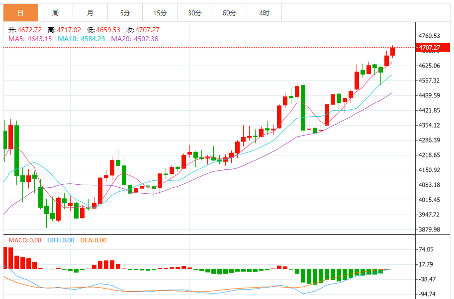周二(1月20日),现货黄金目前位于4706.35美元/盎司附近,涨幅为0.77%。