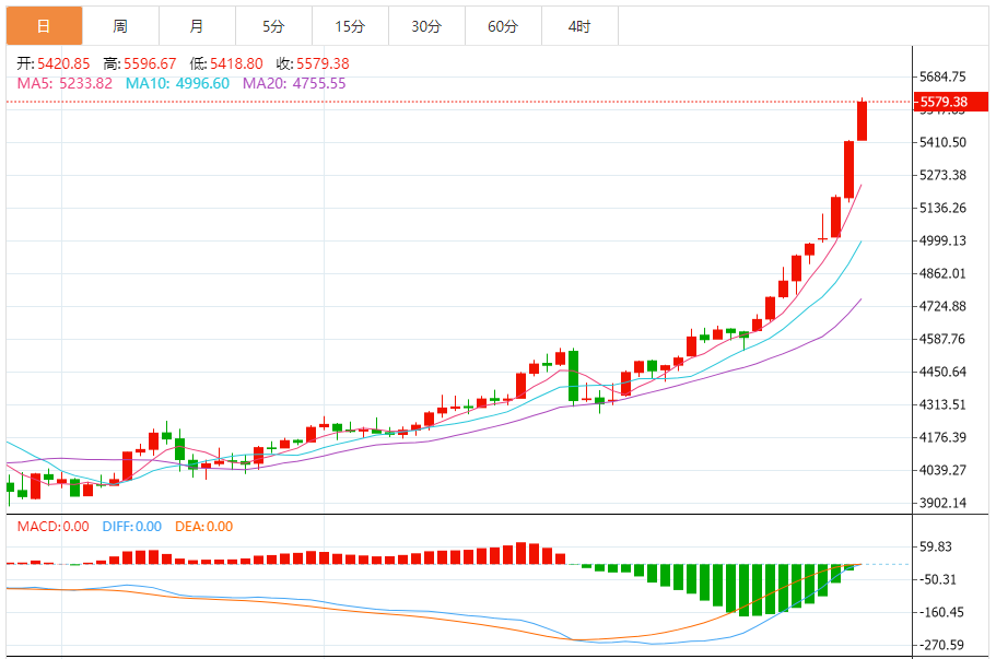 周四(1月29日),现货黄金目前位于5579.23美元/盎司附近,涨幅为3.04%。
