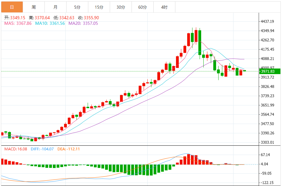 基本消息面 周三(11月5日)纽约尾盘,现货黄金反弹1.28%,报3982.32美元/盎司,北京时间08:45微跌至3929.93美元刷新日低,之后持续上扬,16:07以来持续高位窄幅震荡,00:52刷新日高至3990.46美元,美国AD小非农就业报告和I非制造业指数(3378.35023.260.69%)并未带来显著的波动。COX黄金期货涨0.81%,报3992