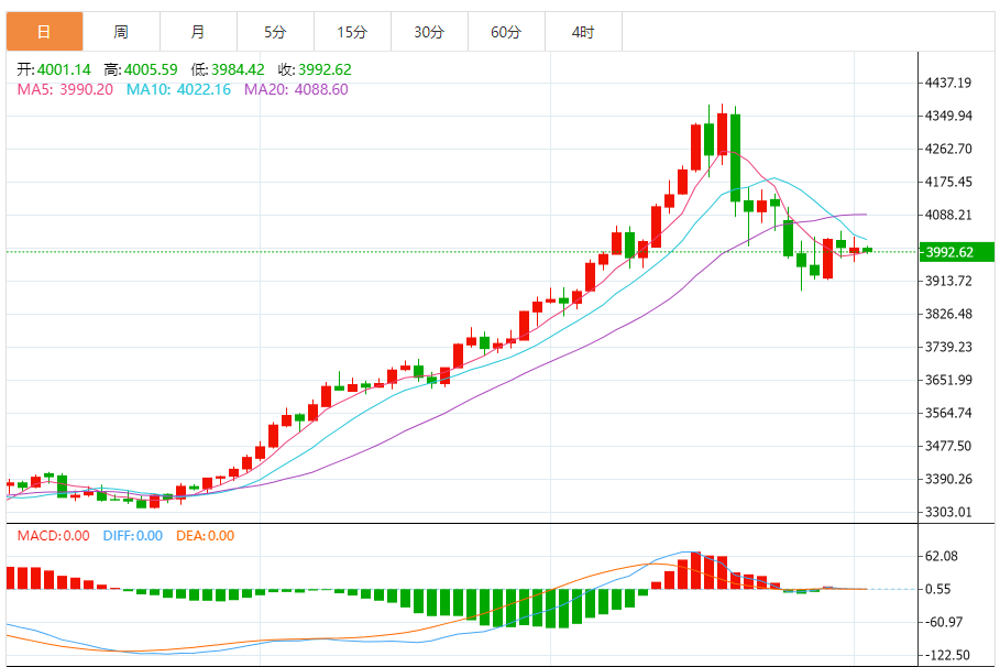 基本消息面 周二(11月4日)纽约尾盘,现货黄金跌1.73%,报3932.8美元/盎司,亚太盘初微幅上涨至4006.48美元之后,至北京时间21:23都持稳于3989美元一线,22:29出现一波显著的加速下跌行情,22:42刷新日低至3928.98美元。COX黄金期货跌1.84%,报3940.30美元/盎司。 相关新闻消息 美国政府停摆追