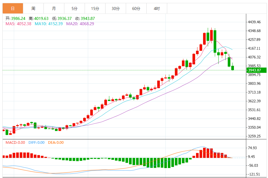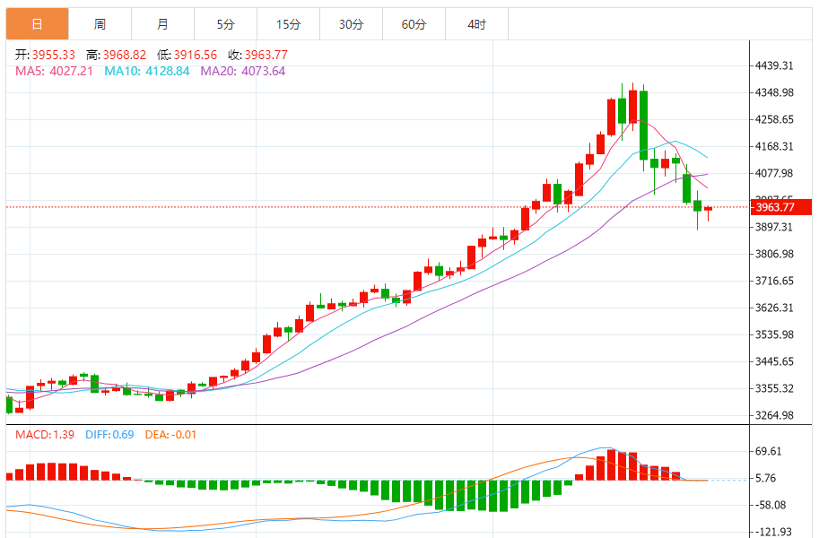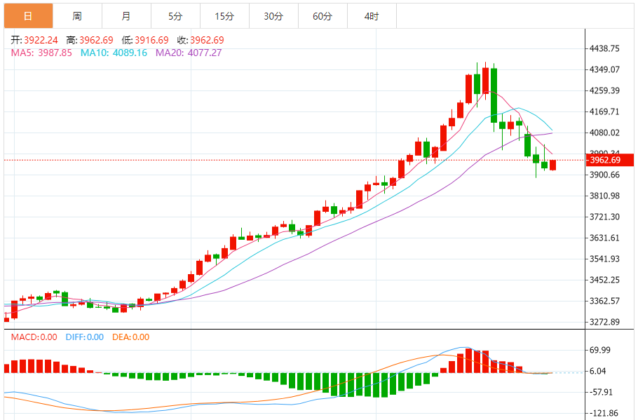 基本消息面 周二(10月28日)纽约尾盘,现货黄金跌0.69%,报3954.94美元/盎司,北京时间17:08跌至3886.62美元,日内呈现出V形走势。COX黄金期货跌1.25%,报3969.40美元/盎司。 相关新闻消息 美国和韩国将签署协议加强人工智能和量子合作 一位美国官员称,美国总统特朗普的政府计划与韩国签