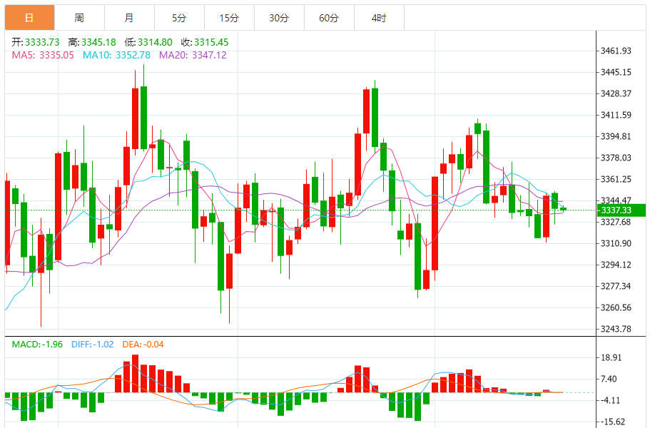 基本消息面 周四(8月21日)纽约尾盘,现货黄金跌0.30%,报3338.22美元/盎司,亚太盘初微涨至3352.15美元刷新日高,随后迅速转跌并持续低位震荡,北京时间19:03刷新日低3325.42美元——18:00-20:10呈现出V形走势。COX黄金期货跌0.17%,报3382.90美元/盎司,也在19:03刷新日低至3367.40美元。 相关新闻