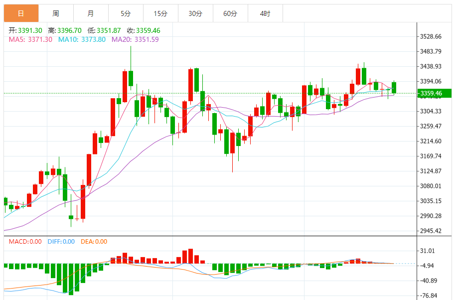 基本消息面 周一(6月23日)纽约尾盘,现货黄金大致持平,报3369.10美元/盎司,跳空高开后迅速在北京时间06:01涨至3395.07美元,随后转跌并在13:36刷新日低至3347.21美元,日内整体呈现出V形走势。COX黄金期货涨0.11%,报3387.80美元/盎司,全天V形走势,整体交投区间为3361.40-3413.80美元。 相关新闻