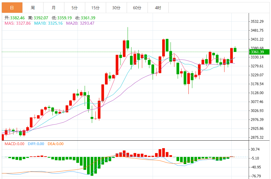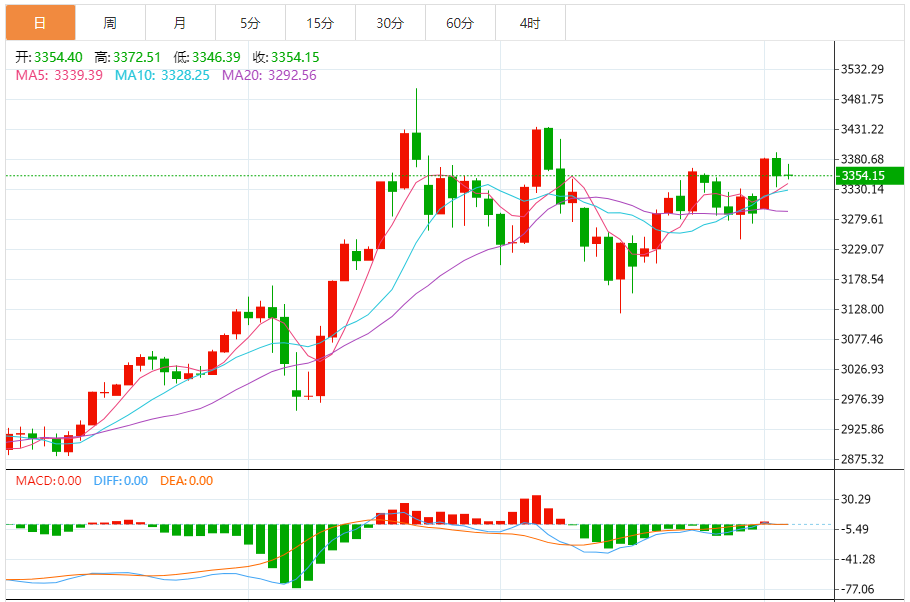 基本消息面 周三(6月4日),现货黄金震荡微涨,目前交投于3359.14美元/盎司附近。现货黄金价格周二下跌0.83%,收于每盎司3353.32美元,此前盘中一度触及5月8日以来的高点3392.07美元。价格的回落主要受到美元汇率反弹的打压。 相关新闻消息 美元走强的直接冲击 美元周二上涨0.6%,从盘中触