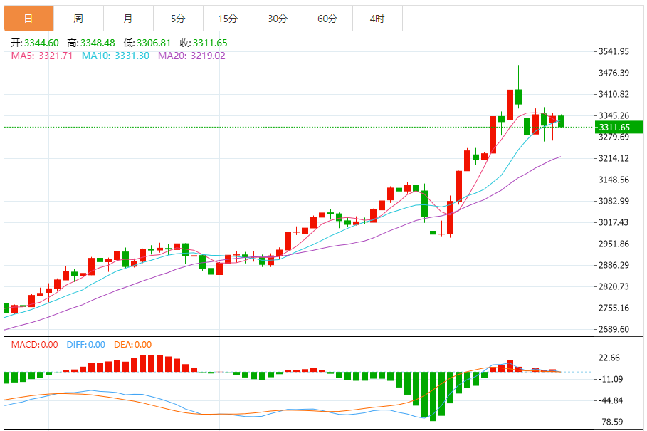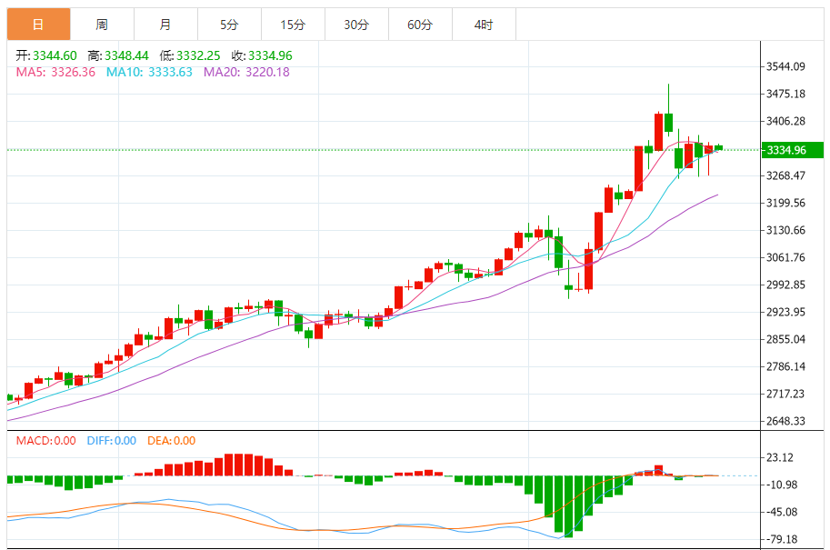 基本消息面 周一(4月28日)纽约尾盘,现货黄金涨0.81%,报3346.65美元/盎司,日内大部分时间交投于3300美元下方,北京时间20:00开启一波“相对显著”的上涨行情。COX黄金期货(较上周五收盘价)涨1.83%,报3358.90美元/盎司(较上周五尾盘报价涨0.87%),日内大部分时间交投于3300美元附近,整体呈现出U形走势