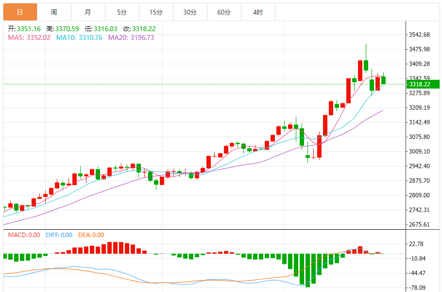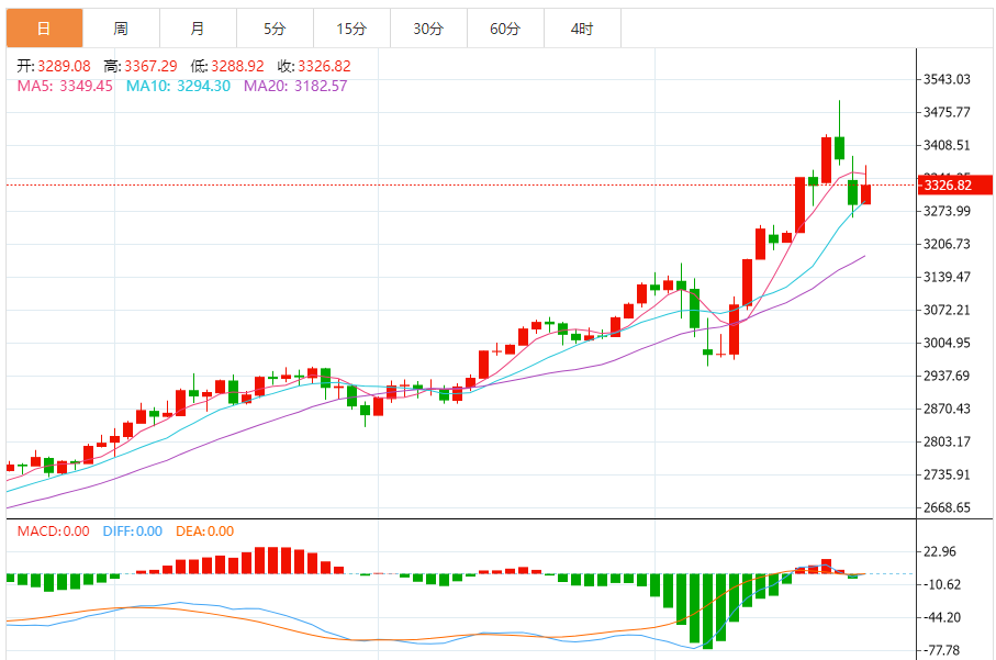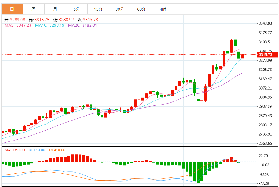基本消息面 周四(4月24日),现货黄金小幅反弹,目前交投于3315.83美元/盎司附近,受到逢低买盘支撑。金价周三延续从纪录高位回落的趋势,下跌近3%,最低触及3260.08美元/盎司,收报3288.18美元/盎司,此前美国总统特朗普称不打算解雇美联储主席,并暗示与在关税问题上取得进展,投资者对风险资产的胃纳有所改善