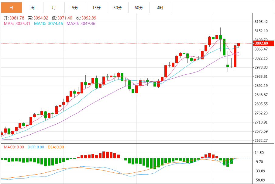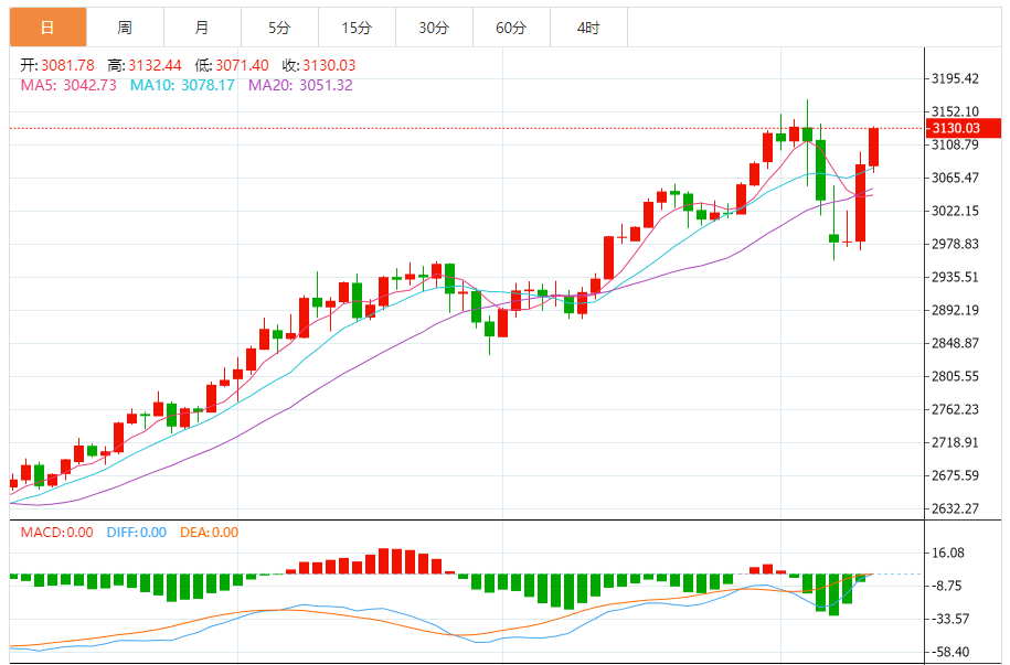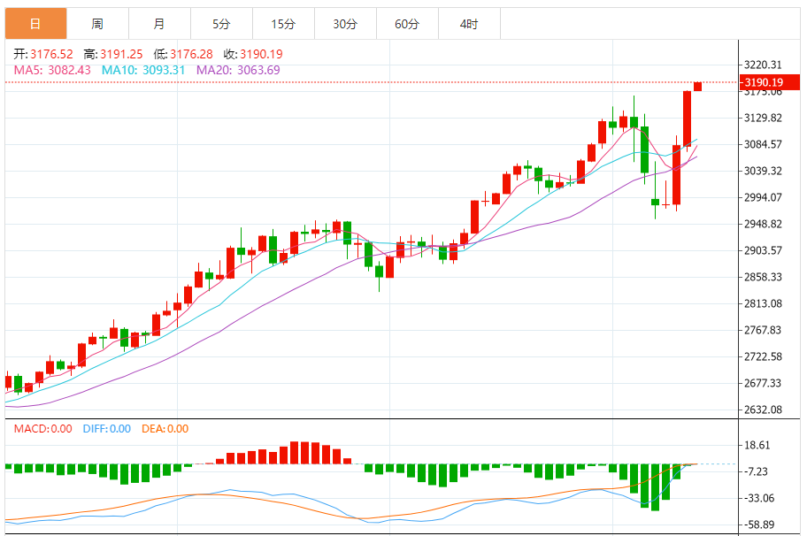 基本消息面 周四(4月10日)纽约尾盘,现货黄金涨3.02%,报3175.89美元/盎司,全天震荡持续上行,交投区间为3071.52-3176.46美元。COX黄金期货涨3.59%,报3190.00美元/盎司,北京时间04:11(美股盘后)涨至3195.00美元,逼近4月2日所创历史最高位3201.60美元。费城金银指数收涨3.66%,报177.28点。 相关