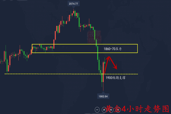 黄金技术面来看,金茷给大家提醒到的,黄金属于典型的慢涨急跌,半个月的涨幅可能只需要一天就平息了,宁可高位放弃追多的十几美金,找好机会做抛售,同时在下跌的时候,我们也要关注最大回撤的空间对比上涨的潜力,权衡利弊后在选择出手,今日黄金的暴力反弹相信大家也吃惊了,明明是空头趋势,为何还能涨?这一现象暴露了黄金不稳定性,利润背后可能就是悬崖,技术形态来看,1860能否充当短期支撑,金发认为不完全能够,下方突破区间的起涨点是在1820附近,1860可能是短期的一个反弹点,但不能作为回撤最大空间,当前价格在1930附近震荡,上方1950遇阻回落,上方均线压力,以及前期震荡区底部压力位在1860-70区间,综合来看,黄金目前处于宽幅震荡,操作上建议点位和区间放大,同时在波动时带的止损点建议是平常的1.5-2倍,避免扫损