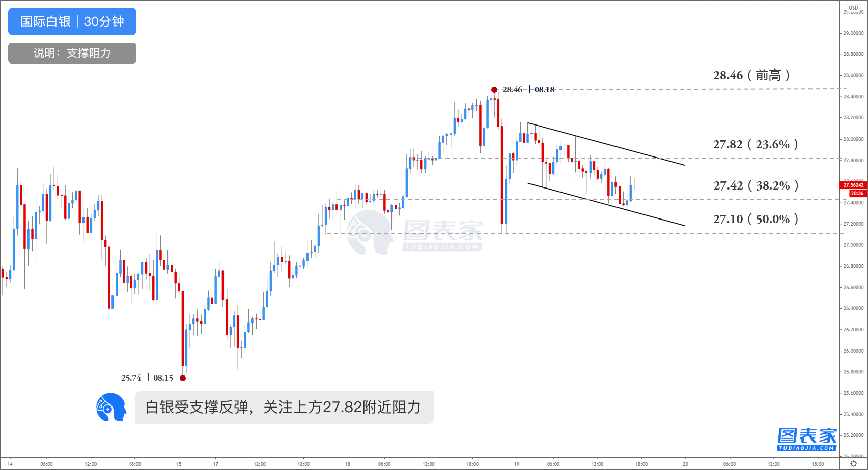 ÈôÒø¼ÛÏÂÐУ¬Ï·½½Ï½üÖ§³ÅλΪ쳲¨ÄÇÆõ38.2%»Øµ÷λ27.42£¬µøÆÆºóÅÌÖлò½«ÔٶȲâÊÔͨµÀϹìÓëì³²¨ÄÇÆõ50.0%»Øµ÷λ27.10×é³ÉÖ§³ÅÇø¼ä¡£