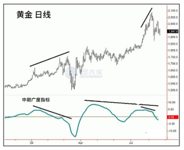 ´ÓÖÐÆÚ¹ã¶ÈÖ¸±ê¿ª¿´£¬¸ÃÖ¸±êÔÚ7ÔÂÏÂÑ®Óë¼Û¸ñ×ßÊÆ±³À룬ÕâÔÚ½ñÄêÒ»ÔÂ/¶þÔ³ɹ¦¾¯¸æ´óµøÀ´ÁÙ£¬Òò´Ë8Ô³õµÄ»Æ½ðµø·ùÒ²¾Í²»×ãÎªÆæÁË¡£Ä¿Ç°£¬¸ÃÖ¸±êÈÔÔÚ×ߵͣ¬Õâ±»ÊÓΪÖÁÉÙÊÇ¶ÌÆÚµÄ¿´µø¼¼ÊõÐźš£¸ÃÖ¸±ê¼¸ºõ×ÜÊÇÔڹؼüµÄÊг¡µ×²¿ºóתÏò£¬Òò´Ë½¨ÒéÔÚδÀ´¼¸Ìì/¼¸ÖÜÃÜÇйØ×¢¸ÃÖ¸±ê¡£