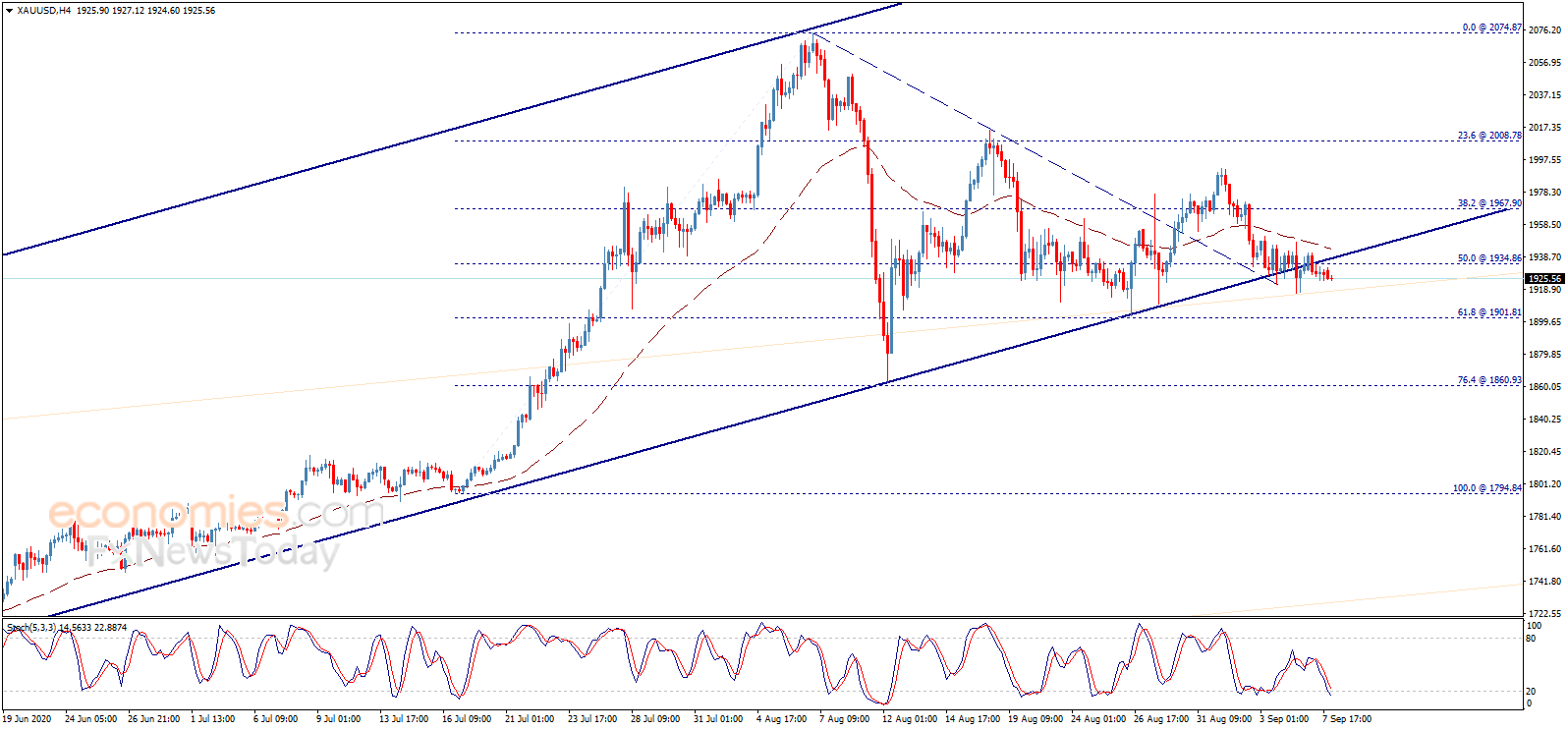 ½ð¼Û×òÈÕÊÕÅÌλÓÚ1934.86ÃÀÔª/°»Ë¾Ï·½£¬Õâ¿ÉÄÜÁî½ð¼ÛÔÚδÀ´¼¸¸ö½»Ò×ÈÕ³ÐÊÜ¿´¿ÕѹÁ¦£¬ÁϲâÊÔÊ׸öÖ÷ҪĿ±ê1901.80ÃÀÔª/°»Ë¾¡£