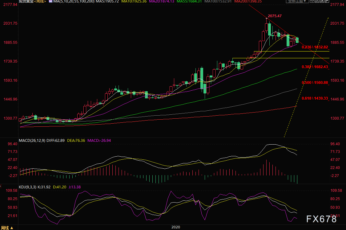 技术面方面,从周线来看,金价本周冲高受阻后,回落至1890下方,强化了9月25日当周大阴线的利空信号,中线下行风险显著增加,如果金价跌破20周均线,目前在1874附近,料将打开新的下行通道,进一步支撑分别关注7月10日当周高点1818和5月22日当周高点1765附近支撑。