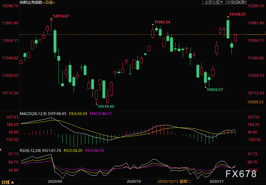 美国股市周三攀升,纳指涨2.01%,道指下跌0.08%,标普500上涨0.77%。因投资者卖出从疫情封锁措施中受益的科技股,买入疫情期间受挫最大的类股,憧憬新冠疫苗将帮助经济扭转局面。三大股指均运行在历史最高位。