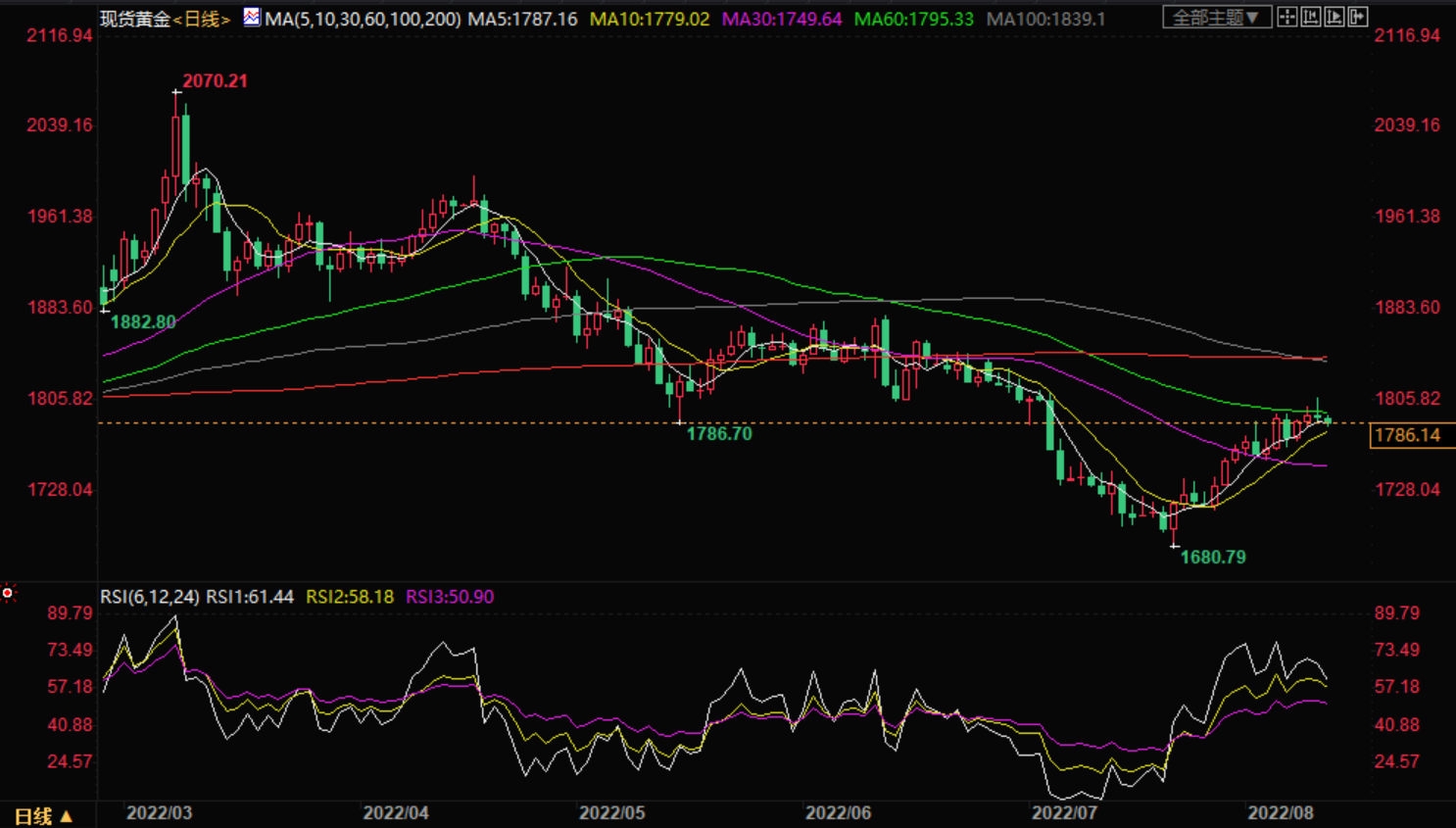 然而,日收盘价低于1784美元附近的50日移动均线支撑位似乎是金价延续最新弱势向4 - 7月下行23.6%的斐波那契回调水平(接近1755美元)的必要条件。
