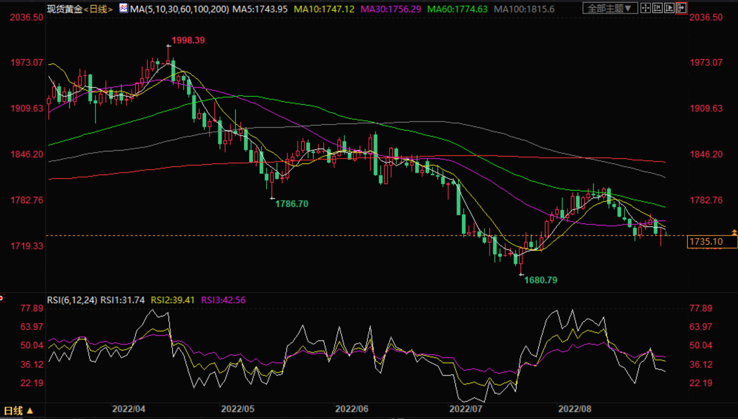 整体来看,虽然美国股市走弱、美元上涨动能减弱、地缘局势紧张,有望给金价提供一些支撑,但美联储官员不断释放鹰派信号,美联储9月份加息75个基点预期不断升温,美债收益率走高,欧洲央行9月份也将大幅加息,这使得持有黄金成本的不断上升,金价后市仍偏向震荡下行。