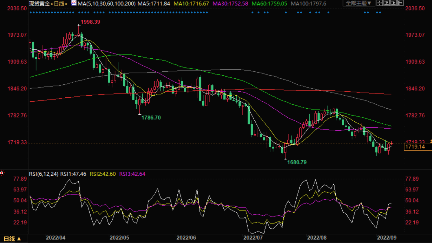 上个月,黄金价格已从1807年8月10日的高点下滑至9月7日1691年的低点。金价下跌的主要原因是美联储政策制定者的各种评论,他们继续推动采取更激进的利率保持行动,以控制美国目前8.5%的通胀。