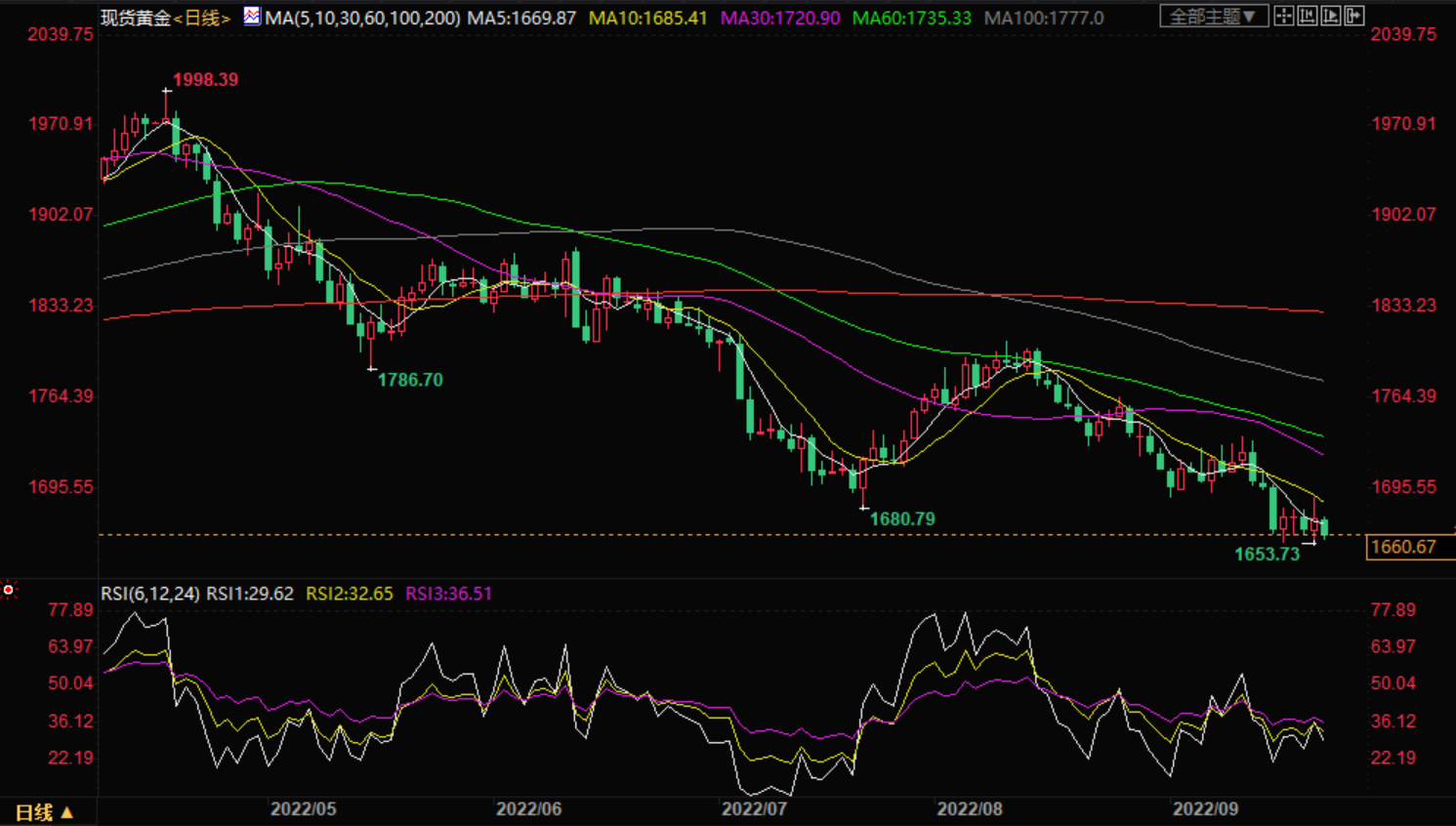 金价在1654.00-1690.50美元的更大范围内形成的盘整的底部边缘附近震荡。50周期指数移动平均线(EMA)大部分与资产价格重叠,这预示着未来的盘整。