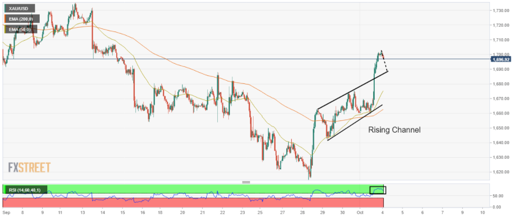 金价继突破小时图上升通道形态后出现强劲反弹。金价突破始自周三高点1,662.80美元和周四低点1,641.59美元的技术形态,表明多头信心十足。金价在较高水平信心耗尽,预示著金价将整理至1,690.00美元附近。