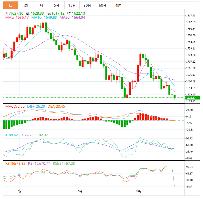 截止发稿,黄金价格现报于1622.14,跌幅0.34%。(亚汇网编辑:楠楠)