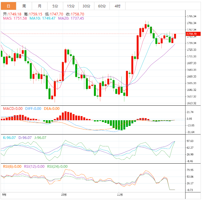 下一个重要的上行障碍位于1762美元,这是一周38.2%的斐波那契水平。如果持续突破后者,将开启一个有意义的上行,朝着一天的支点R3,即1769美元。