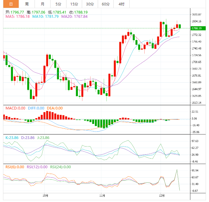 日线图上,黄金价格正在下降到从11月23日低点1721.23美元开始绘制的向上倾斜的趋势线附近。黄金已跌破50周期指数移动平均线(EMA),收于1,791.60美元。然而,200-EMA在1,780.00美元附近仍在上涨,这增加了上行过滤器。