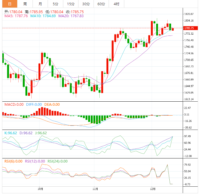 从技术面来看,金价近两周两次上破8月份高点1807.72附近阻力均以失败告终,MACD顶背离后初步死叉,KDJ死叉运行,在收复200日均线1790关口前,需要提防局部M顶的可能性,下方关注21日均线1768.27附近支撑。