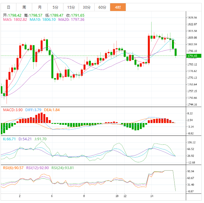 黄金价格正在向以四小时为尺度形成的上升楔形图模式的下缘下降。上述图表模式表明波动率在隧道尽头收缩。黄金已经跌至50周期指数移动平均线(EMA)附近的1.790.00美元,而200-EMA的1,754.34美元仍在上涨,这表明长期趋势仍然完好无损。