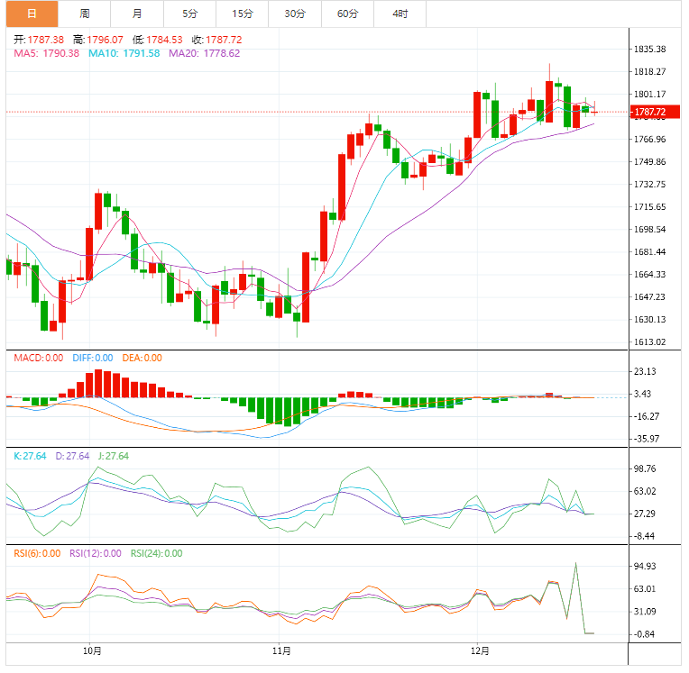 如果金价在1775美元上方依然疲软,那么不排除金价会向10月份接近1730美元的高点下跌。