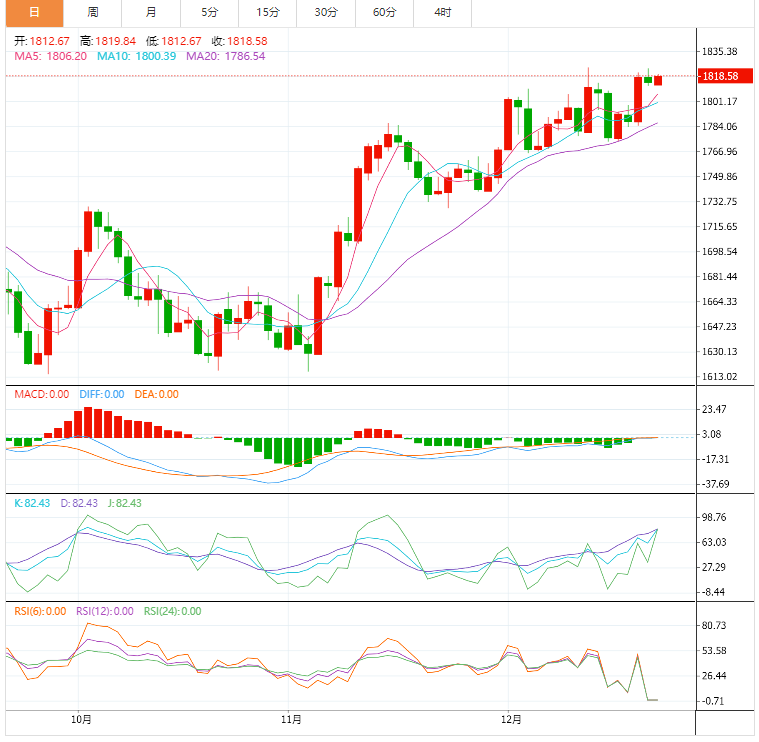 若是横盘后直接强势突破前期高点,则结合形态突破后稍微回撤即跟多,以形态灵活应对。建议以回踩低多为主,反弹高空为辅,上方短期重点关注1825-1830一线阻力,下方短期重点关注1805-1800一线支撑。