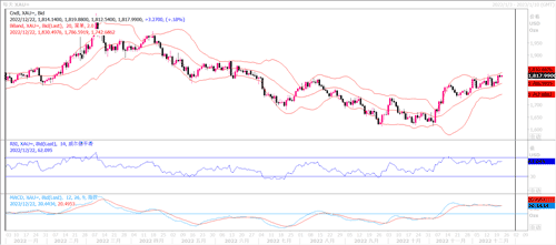 周三(12月21日),国际金价小幅走低,脱离上个交易日录得的一周高位1820.98美元/盎司,现货黄金下跌0.28%至1812.80美元/盎司,整体仍处于高位盘旋状态。