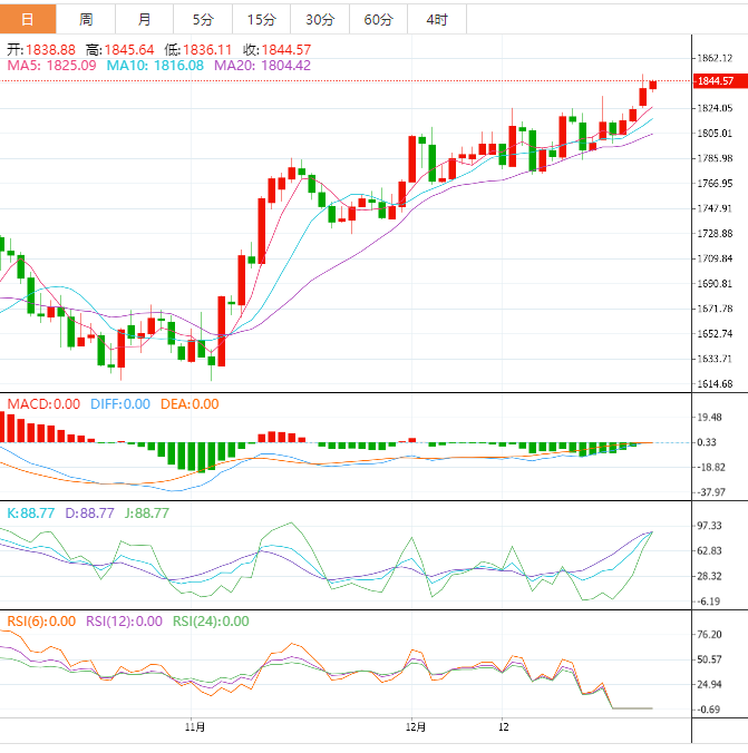 Hansen补充说:“若金价升至1842美元以上,将测试1850美元和1878美元的阻力位。”