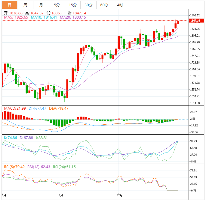 金价有望持续突破前一天的高点1850美元,继续上行。黄金多头的下一个相关止损点是一周R2的1,855美元,在此之上,不排除再次反弹至一天R2的1,863美元。