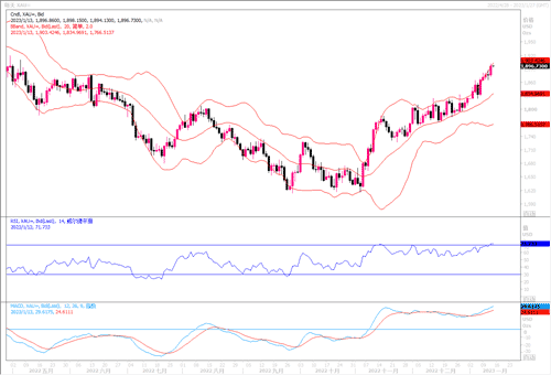 技术层面上,从4小时图来看,目前随机指标传递正面信号,等待金价进一步上涨,若继续穿越1900.00美元水平,更高目标瞄准1928.60美元/盎司。日线图上,60日均线已穿越120日长期均线,对黄金走升产生的支持作用在逐渐在增强,除非金价跌破1865.00美元/盎司,否则看涨预期仍将有效。预料现货黄金后市交易将会是小回大涨的节奏。