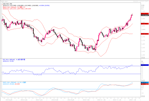周一美国市场恰逢马丁路德金纪念日休市,数据和消息相对较少,在金价短线大幅上涨后,一些短线多头趁机获利了结,黄金出现调整性回落。但金价继续受到美联储加息步伐放缓预期支撑。美联储去年在连续四次加息75个基点后于12月放缓加息步伐至50个基点。大多数交易员预计,美联储将在今年首次政策会议上进一步放慢加息步伐至25个基点。投资者还将关注周三(1月18日)公布的美国零售销售数据。有机构分析认为,美国零售支出步伐不可持续,因为消费者保持着大流行时期的购物习惯。随着美联储货币紧缩的影响将在2023年充分体现,最糟糕的情况还在后头。美国家庭的消费似乎远远超出了他们的收入,未来几个月支出将大幅放缓。随着通货膨胀率开始好转,而且速度快于美联储的预期,分析界认为美联储将很快改变其措辞。在美国经济的通胀压力正在逐步得到控制情形下,基金经理积极增加了他们的黄金多头敞口,理由是美联储最终加息终点可能没有预测得那么高,这让投资者相信黄金有上涨空间。