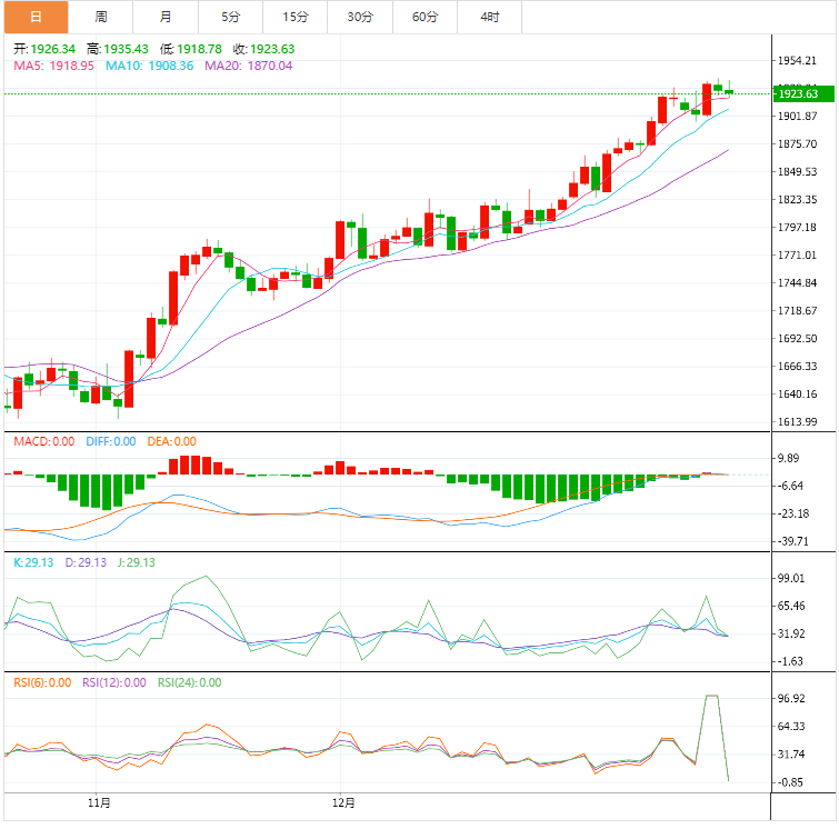 金价在上周触及的九个月高位附近徘徊,但仍停留在13日的看涨通道内,目前在1,972 - 1,921美元区间。