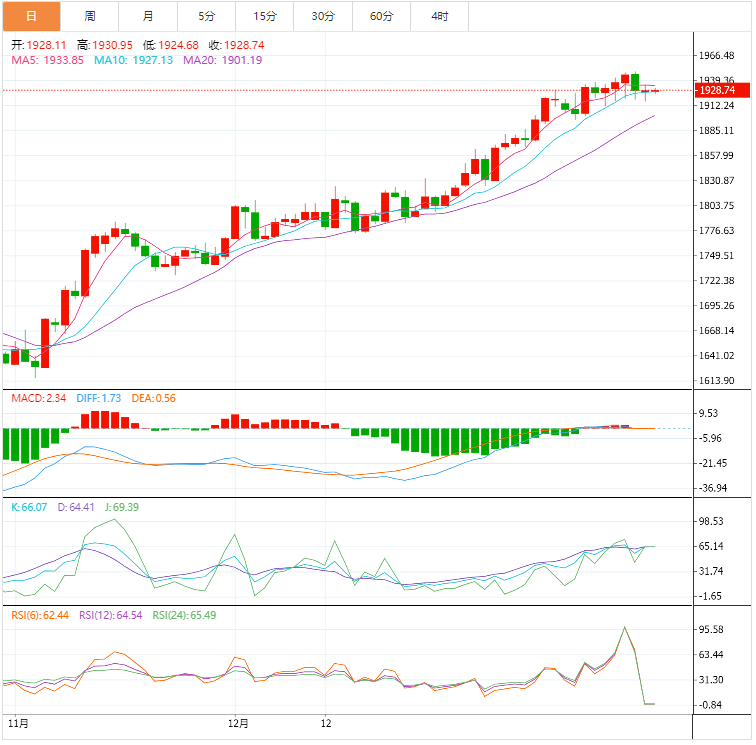 周一盘中,现货黄金窄幅震荡,目前交投于1928.71美元/盎司。上周现货黄金收涨0.1%,实现连续第六周上涨,这是自2020年夏天金价创下2075.47美元后最长的连续上涨。1月26日,金价一度创下9个月来的新高1949.06美元。