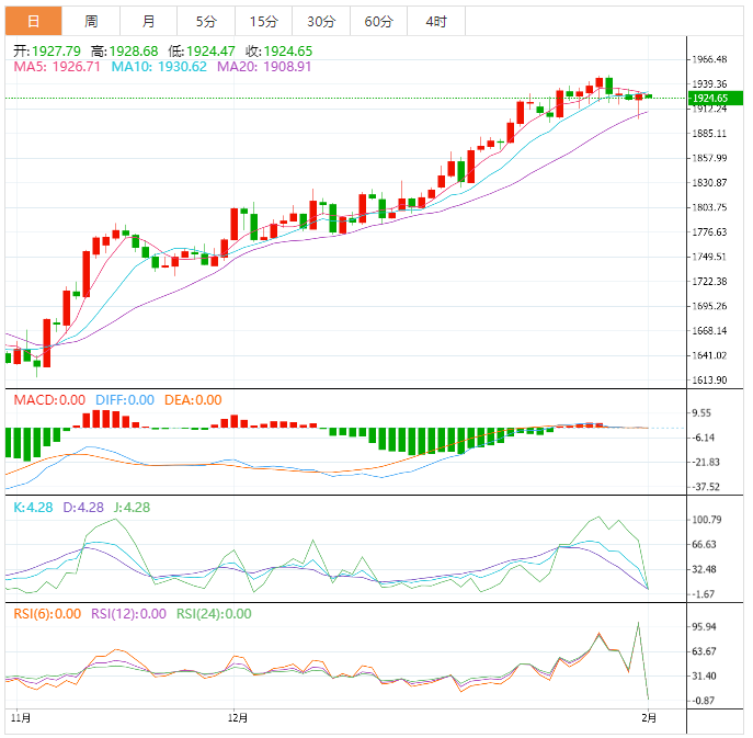 周三亚洲时段,现货黄金窄幅震荡,目前交投于1927美元/盎司附近。隔夜金价探底回升,虽然上周出炉的美国四季度GDP数据增强了鹰派预期,再加上月末仓位调整因素,美元指数周二一度反弹至近两周高位附近,金价则一度跌至1900整数关口附近,但美国第四季劳动力成本增幅低于预期,令鸽派预期有所回升,吸引逢低涌入金市,帮助金价扭跌为涨,收盘交投于1928美元/盎司附近。