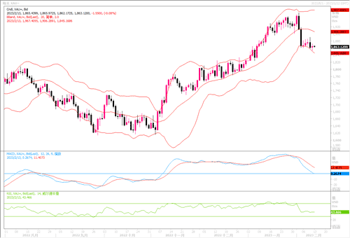 现货黄金上周五微涨0.19%,最高触及1872.22美元/盎司,最低探至1851.50美元/盎司。最后收报于1865.14美元盎司水平。整体上还是处于低位盘整走势中。