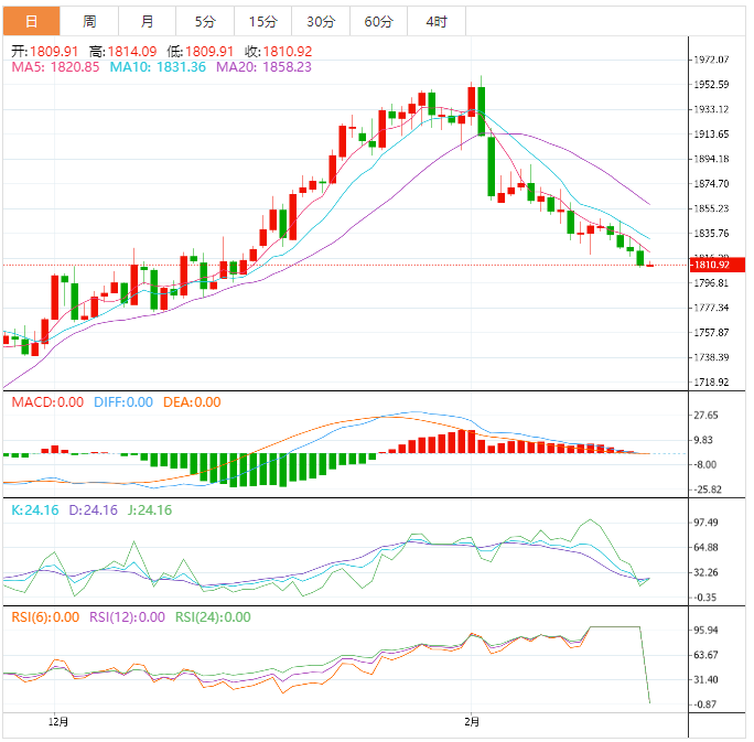 尽管如此,金价跌破一周的水平支撑线1,817美元左右,加入了MACD移动平均线(MACD)指标发出的看跌信号,加强了下行偏见。