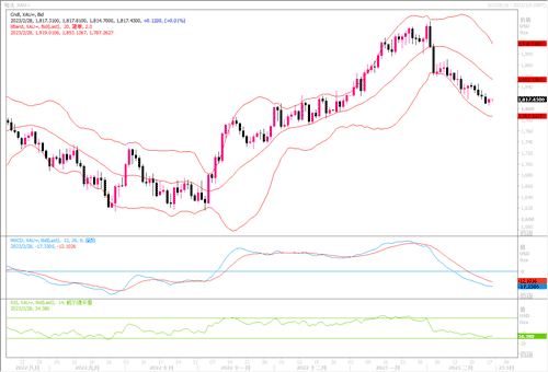 周一(2月27日),由于美国耐用品订单数据不佳,给到现货黄金空头回补略作反弹的机会,当日自低点1806.20美元水平处略回升10美元左右,收盘于1816.70美元水平。