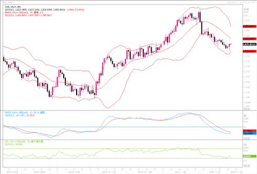 周二(2月27日),由于美国当日公布的数据不佳,现货黄金继周一之后继续出现低位反弹行情,盘中最高触及1831.13美元,反弹幅度有所提升,当日涨0.55%收盘于1826.69美元涨。