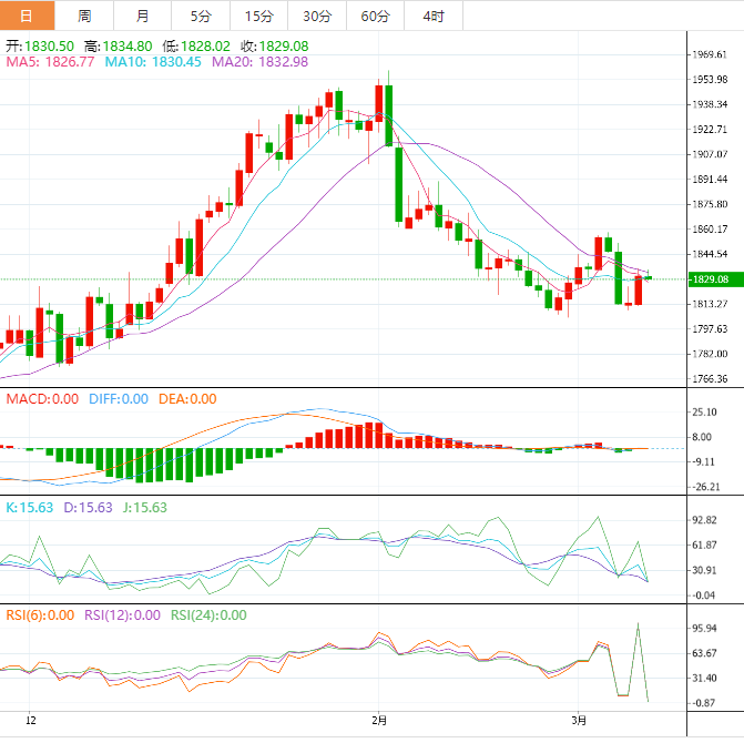 美国二线就业数据喜忧参半,美国公债收益率回落,创下一周最大单日涨幅,令短期关键阻力位在1,831美元附近。